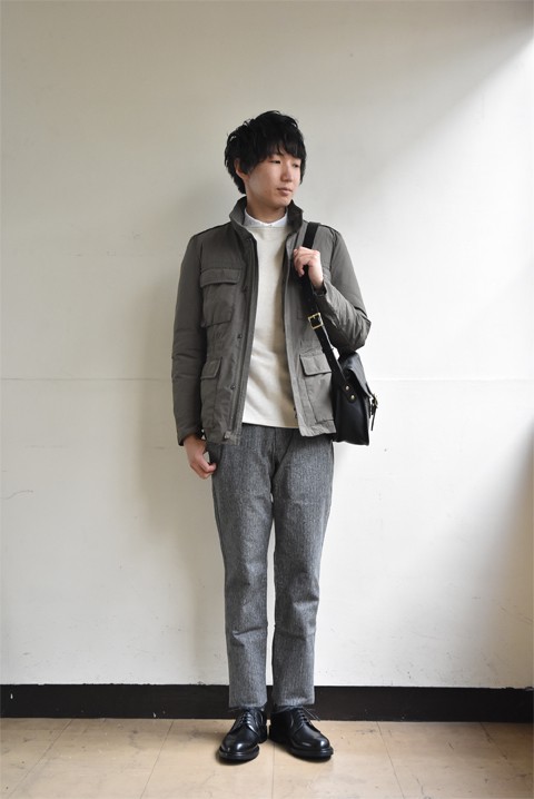 ベーシックなアイテムで固めた定番スタイル。色使いも落ち着いていて、どんな方にも似合うであろうお手本のデイリーカジュアル(カッコいい普段着)です。