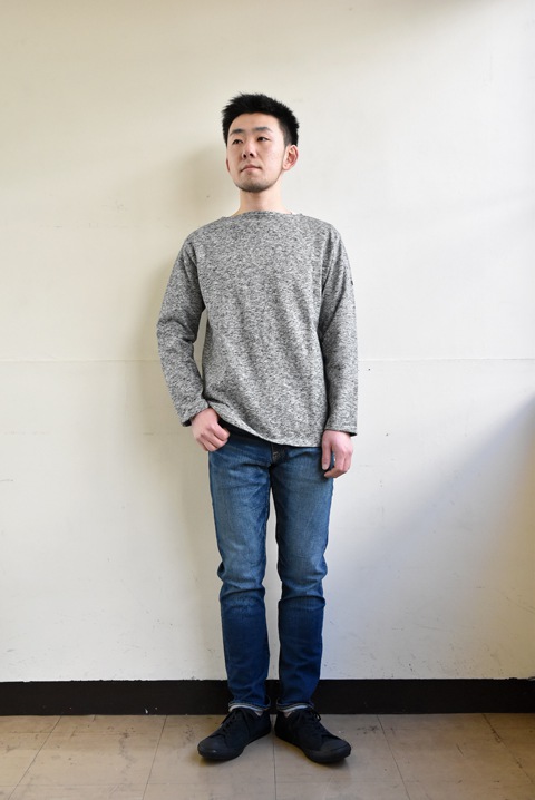 濃淡2色の糸を使用した杢調のジャージー素材のメランジェは、いつものガシガシ・モクモクよりも肌触り着心地がソフトで柔らか。ですのでアウターのインナー使い(昨日のザボスタ)にも適しています。 また、ふんわりした質感と表情のある見た目ですので一枚でサラッと着こなすのも落ち着いた大人っぽさがあって良いですよ!細身のジーンズと合すのが一番しっくりきますかね? 個人的にもまだもっていない種類のウエッソンで気になるアイテムのひとつです。 【CANDIDO(白)】