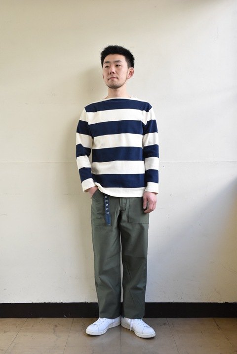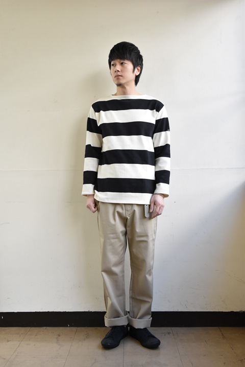 今シーズンの新作アイテム、"極太"ワイドボーダー。通常のワイドボーダーよりも更にピッチの広いボーダーは見た目そのままに存在感あるデザインです。一見敬遠しそうになりますが、よりカジュアルさが増して可愛いです。ボーダーに合わせてパンツもゆるめのワークパンツがおすすめです! ワイドボーダーは持っていますが、これまたワイドなボーダー(笑) 着てみると案外しっくりきて、いつものスタイルにもハマります◎ 気分なリラックスやストリートスタイルには相性が良いですよ! 【ECRU/MARINE(生成り×マリン)】