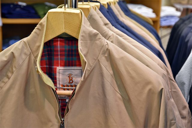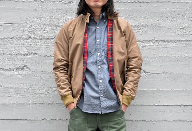 そして最近はすっきりスマートなシルエットになっているんです。モダンクラシックと呼ばれるモデルございます。さらに生地は、表地に撥水加工が施され通気性と速乾性に優れたコットン×クールマックスポリエステル素材を採用してハイテク化。また裏地は伝統のフレイザータータンチェックでございます。伝統と革新のハイブリッドがカッコいい!!