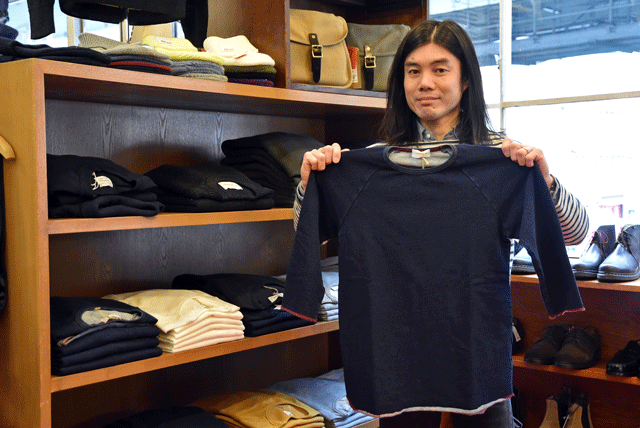 SPINNER BAIT(スピナーベイト) インディゴ裏毛ラグランクルー7分袖 ¥8,424-