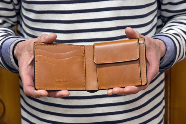 言わずと知れた栃木レザー株式会社製のフルベジタブルタンニングレザー(ヌメ革)でございます。経年変化が期待できるこちらの革は、SLOW(スロウ)を代表するもの。SLOW(スロウ)の財布シリーズのまさにオリジン。原点でございます。
