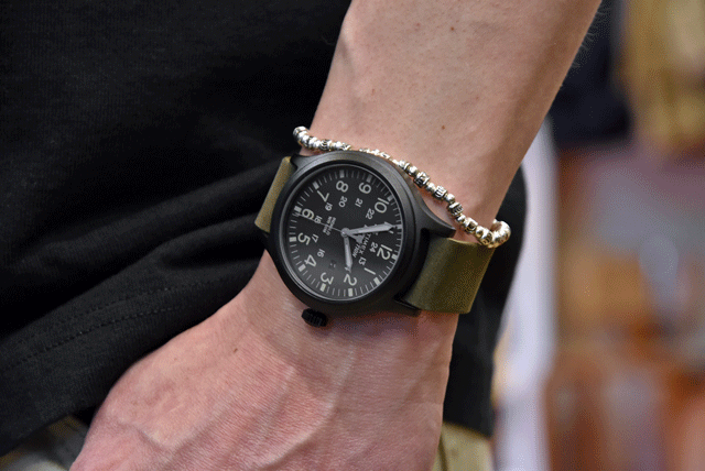 アメリカから入荷しました!お馴染みTIMEX(タイメックス)の腕時計です。そしてアメリカ買い付けアイテムのブレスレットと重ねつけがおすすめの腕回り事情です。