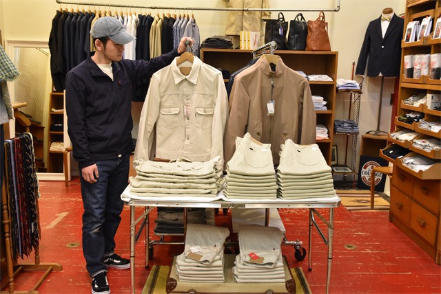 季節の変わり目にはパンツがよく動きます。RESOLUTE(リゾルト)フェア後、オリジナルブランドのDouble Tree(ダブルツリー)が更に活発的に。今月の中旬にサテンストレッチとピケも加わり、入ってすぐのところにドーーンっと!!