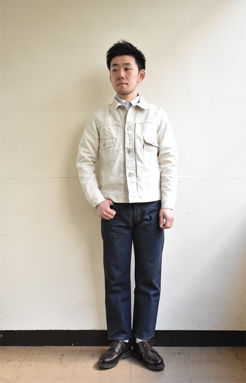 「Double Tree(ダブルツリー)」はデニムデザイナー林 芳亨(はやしよしゆき)氏の監修のもとで作っていただいているZABOUのオリジナルブランドでございます。 皆さま、大変長らくオマンたせ致しました。お馴染み「Double Tree(ダブルツリー)」より、今春はPique(ピケ)とSateen(サテン)の生地を使ったパンツとジャケットをリリースさせて頂きました。既にご周知の貴兄も多いとは存じますが、今一度お付き合いくださいませ。やはり春になるとピケやサテンがしっくりくるのはワタクシだけではございますまい。しかもコーディネイト万能のオフホワイト! 春風が貴方の頬をそっと優しく吹き抜けるような爽やかさでございます。 パンツはRESOLUTE710をモディファイした形でございますが、生地によって縮率が違いますので、サイズ選びにはご注意くださいませ。ちなみにピケジーンズはおよそワンサイズほど縮んでおります。(例えばW30 はW29になっちゃってます。)RESOLUTE710よりもワンサイズもしくは、ツーサイズ上げてお選びくださいませ。ピケジャンはLEVISの2NDをモチーフにしております。アームホールは細目で身幅はボックスシルエットで仕上がっております。この形をぜひともご堪能くださいませ。 逆にサテンジーンズはRESOLUTE710 のサイズ選びと同じで大丈夫です。(例えばW30ならW30でOKです。)左右に少し離れたバックポケットのディティールまで忠実に再現してございます。今っぽさの中に隠された心憎いディティールをお楽しみくださいませ。 【ピケジャン】