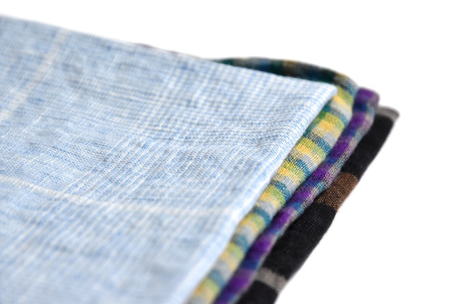 リネンシャツ等も同じくですが、暑くなるこれからの時期にリネンは最適な素材なのです。今回はハンカチ・タオル・ストールと3種類でご用意しました。