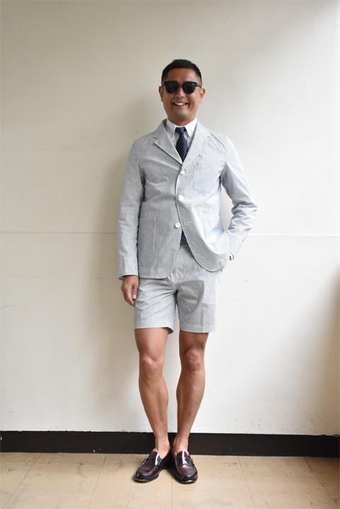 さらりと快適なシアサッカー素材のショートパンツ。単体使いはもちろんですが、最近気になる"セットアップ"に挑戦してみるのはいかがですか? 同素材のジャケットと程よくタイドアップに。
