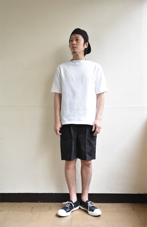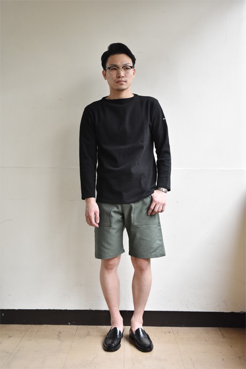 ZABOU定番、GUNG HO(ガンホー)ベイカーパンツの短パンバージョン。短すぎない丈ですのでご安心くださいませ。コーディネイトはいつもの組み合わせ。しいて言うなら気分な"ブラックカラー"で。