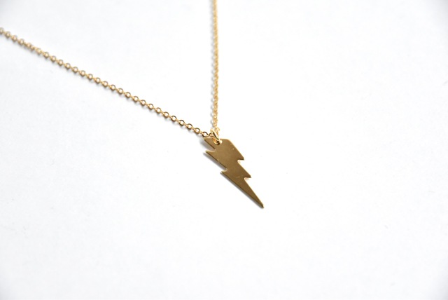 稲妻をモチーフにしたトップは金メッキを使用し、綺麗な光沢が特徴的。チェーンには金メッキ加工を施した真鍮を使用しております。
