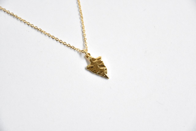 植物葉をモチーフにしたトップは金メッキを使用し、綺麗な光沢が特徴的。チェーンには金メッキ加工を施した真鍮を使用しております。