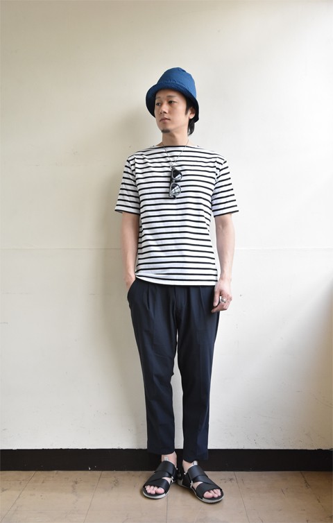 定番ながらも今の気分にもマッチするSaint James(セントジェームス)のボーダーT。夏は薄手の"ピリアック"で決まりです。リラックスがキーワードですが、ただ楽なだけではいけません。melple(メイプル)のこれは快適+上品さを兼ね備ええた優れもの。サンダルはNIKEらしいスタイリッシュなデザインが◎
