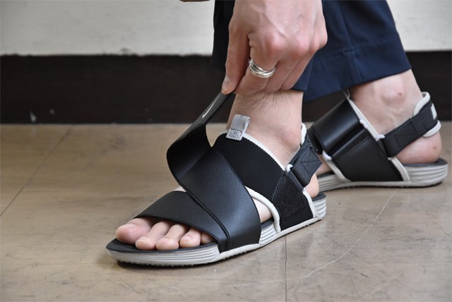 “スポーツサンダル”というのが長らく人気でよく見かけますが、こちらはモードっぽさすら感じさせる都会的でスタイリッシュな見た目。