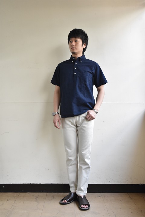 【SERO(セロ) ボタンダウン半袖シャツ シアサッカー】