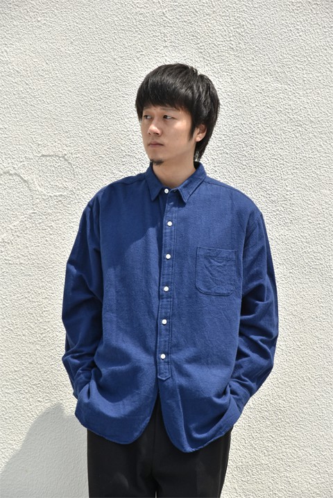 この“ビッグマン”もウィークらしい一着として定番になってきました。 先程とは打って変わって見た目にすごくインパクトのあるビッグシルエットシャツ。ヨーロッパで生まれた“グランパシャツ”がデザインのベース。 こちらはシーズンに合わせたそれらしい生地でリリースされます。 今年は単色のフランネル。 小さくまとめた衿がすっきりと上品。 トレンド性の強いアイテムかと思いきや、独特なゆったりシルエットは一度着るとこれが中々クセになります。 一枚で着る時は袖をラフに巻くって、リラックスした雰囲気でお楽しみ頂ければと思います。 ビッグマンは衿型を選べるのもポイント。 このマオカラー(スタンドカラー)と先程の小衿。 こっちの方が、今っぽい? よくビッグシルエットのトップスには細めのボトムスを合わせるのが良いと言われますが、なんの、太いボトムスでも実は良く合います。 シャツは皆様何かしらお持ちかと思いますが、こんなファッショナブルなシャツも一枚あるとコーディネートの幅が大きく広がりますよ。 どちらもウィークらしさのあるシャツ。 今回初めて知ったという方も、是非この機会に一度お試し頂ければと思います。 それでは今日はこの辺で。 明日も皆様のご来店お待ちしております。 『weac.(ウィーク)2017A/W受注販売会』 期間:5月20日(土)~5月28日(日) 時間:12時~20時 場所:ZABOU 2F&ZABOU WEB SHOP ☆実店舗へのご案内、お店までへの行き方を地図や動画でご紹介! ⇒ZABOUのお店 ☆通販で購入、商品詳細など詳しく見る! ⇒ZABOU WEB SHOP(ウェブショップ) 通販サイト ●新着商品・再入荷商品などのお知らせ、その他情報満載! ⇒【ZABOU facebook(フェイスブック)】 ●おすすめ商品やザボスタが見たい! ⇒【ZABOU Instagram(インスタグラム)】 ●洋服の合わせ方、色の使い方などZABOU STYLEをご紹介! ⇒【ZABOU WEAR(ウェアー)】