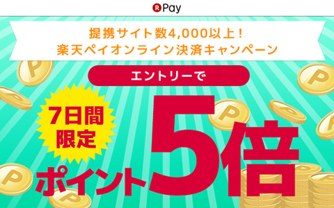 7日間限定!エントリー&楽天ペイ(オンライン決済)をご利用でポイント5倍キャンペーン