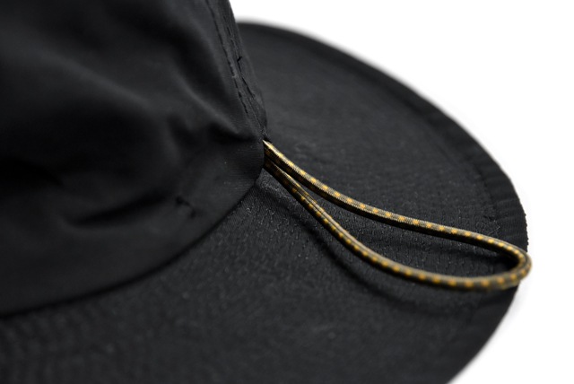 コットン60%、ナイロン40%の割合から成る60/40 クロス生地。頭のてっぺん部分が丸ではなく、楕円形なのでクラシックな雰囲気ながらもスッキリ見えます。サイズ調整も兼ね備えたドローコードで帽子を丸め、ゴムで留めればコンパクトに収納もできちゃう優れもの◎