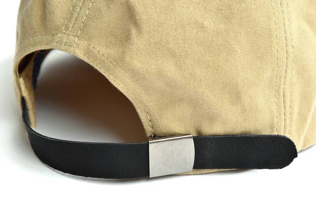 定番の6パネル(野球帽)の形で、パラフィン加工が施されたキャップ。パラフィン加工とは、生地に蝋引きをして、撥水効果をもたせる加工です。ですのでいつもの野球帽をコレに変えるだけで、雨カジコーディネイトに早変わり! また、サイズ調整のアジャスターはレザーベルトなので後ろ向きに被っても様になりますよ!
