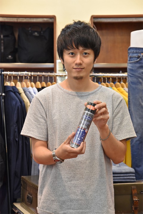 今の時期特に活躍する防水スプレー。革でも綿でも、靴にも服にもと素材やアイテム問わず様々に使えるのであるととても便利ですよ。例えば、靴を履いたまんまでパンツの裾辺りからスプレーすると靴はもちろんパンツの裾も濡れにくくなります。まだお試しになられていない方は是非“買っちゃいました”してくださいませ~。