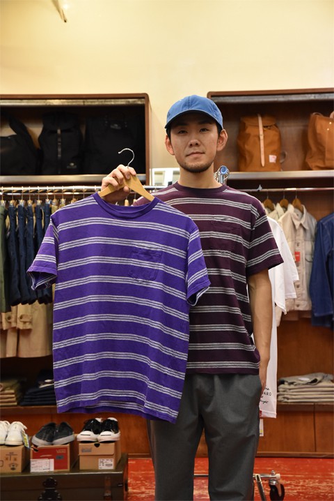 オリジナルで生地から用意した綿100素材のボーダーT。オールドサーフな雰囲気とこの色味にやられ2色買い。