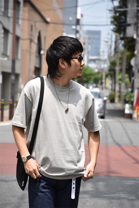 すっきりとテーパードが効いたシルエットだから、ゆったりバランスのTシャツを合わせたコーディネイトもおもしろい。