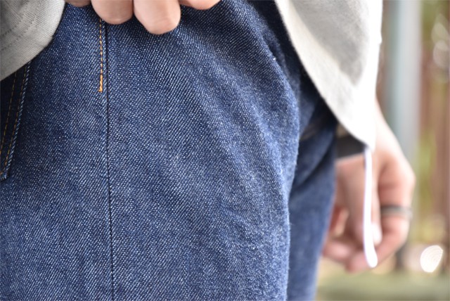 代表モデルの710に比べ、股上がやや浅めで膝から下がテーパードされているシルエットです。