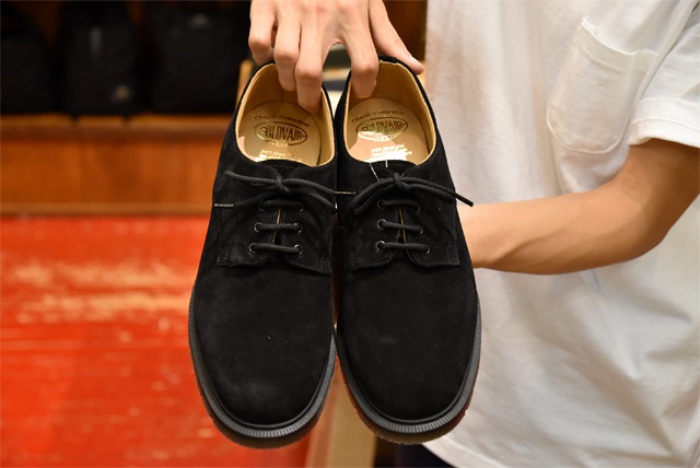 このプレーントゥはボリュームが出すぎていなく、ベーシックなフォルムなので、非常にあわせやすく、履きやすいのでおすすめです。表革のブラックとスウェードのブラックの2型を展開しています。