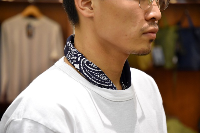 定番のペイズリー柄のバンダナでカラーバリエーションが豊富です。始めは糊が付いておりパリっとしておりますが、洗い込んでいくうちに生地が柔らかくなります。また使い込んでいくことでの色褪せなどの変化も味となってお楽しみ頂けます。