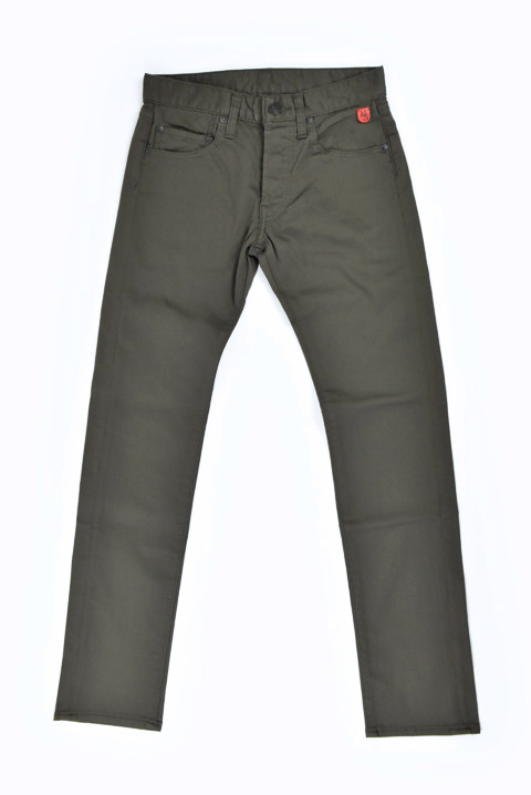 ラインナップ中唯一デニムではないコットンピケストレッチ素材のOlive(オリーブ)。少し薄手の生地感でやわらかくって穿き馴染み良し!でございます。