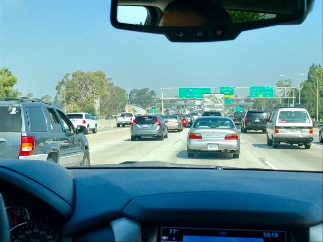 サンタモニカに向かう車の中にて、フリーウェイの様子。少し見づらいですが、最大片道7車線にもやるフリーウェイに未だに圧倒されています(笑)