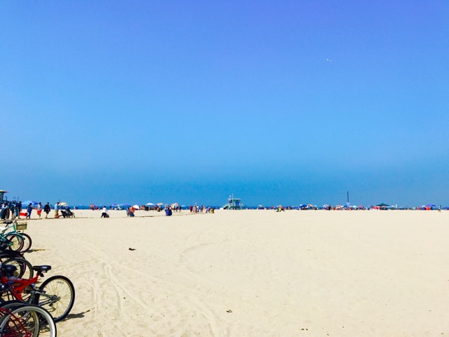 サンタモニカを出て、レンタサイクルにてベニスへ向かいます。