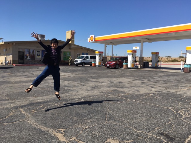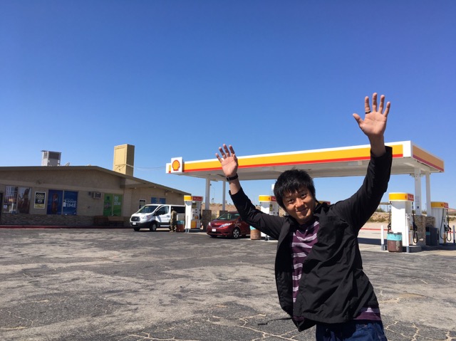 道中で寄ったガソリンスタンドにて。景色が壮大、アメリカにいることを実感する瞬間の一つです…!