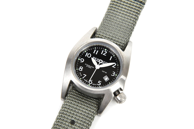 シンプルながら細かく計算されたデザイン、オーバースペック過ぎない優れた機能性、BERTUCCI(ベルトゥッチ)のミリタリーウォッチ、おすすめでございます。