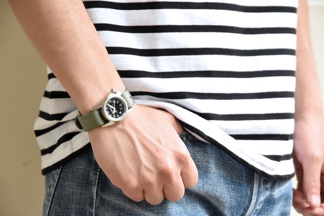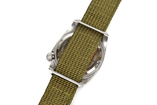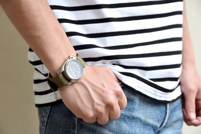 機能面はと言いますと、ムーブメントは信頼おける日本製。ねじロック式リューズを採用した、心強い10気圧防水。ケースは汚れやキズが目立ちにくい、マットなステンレスケース。ベルトはやや厚めのナイロン素材でタフさも十分。などなど