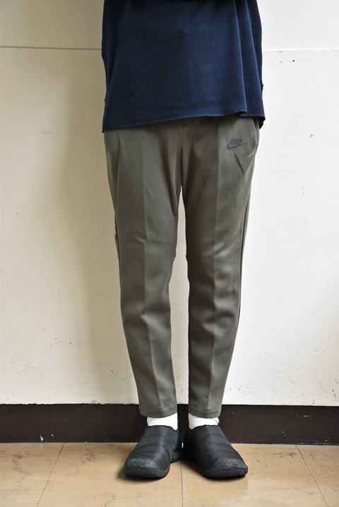 どうもです。瀬川です。 3連休、台風の影響で生憎のお天気ですね。 お出掛けの際は十分にお気をつけくださいませ。 さてさて、毎年この時期は入荷ラッシュです。 秋物からセーターなどの冬物までわんさか。まずは店頭でゆっくりご覧いただければと思います。 ウェブショップにも随時アップしてまいりますので、今しばらくお待ちくださいませ。 では、今日のご紹介はこちらです。 ナイキのテックフリースパンツでございます。 スポーツ、大きく言えばアウトドア。そういうテイストがまた気になるここ最近。 見た目の軽快さもそうですし、機能性や動きやすさを考慮したものが多いので着ていて快適。 ナイキ独自の“テックフリース素材”は軽くて穿き心地抜群。 シルエットは、股上を深めに取り、膝から下のテーパードを強く効かせですっきりと。丈は靴がよく見える短め丈。スポーツテイストも短め丈がしっくりときますね。 フロントポケットはプリーツで隠れるよう配置されており、全体がすっきりとスタイリッシュに見えるデザインに。 バックポケットもサイドから入れる面白いつくりです。 こんな感じで隠れとります。 後ろはこんな感じ。 スポーツテイストを取り入れるにはピッタリな一本。 普段のコーディネートにはもちろん、軽い運動の際に着ていただくのもおすすめですよ。 お色は上のオリーブとネイビー、ブラックでご用意しております。 【ネイビー】 ●帽子 SUBLiME(サブライム)  ¥7,020- ●ニット STOCK(ストック)  サイズ:L  ¥13,824- ●パンツ NIKE(ナイキ)  サイズ:M  ¥14,040- ●シューズ KEEN(キーン)  サイズ:8.5  ¥8,640- 身長175cm 体重65kg 足約26.5cm ワタクシ瀬川でMサイズ。 168cm 58㎏のスタッフ大井でSサイズがジャスト。 【ブラック】 商品についてより詳しくはZABOU WEB SHOPよりどうぞ。 ⇒NIKE(ナイキ) テックフリースパンツ2 軽いながら保温性も高い生地ですので、これからしっかり穿いていただけるパンツです。 是非お試しいかがでしょうか。 それでは、明日もご来店お待ちしております。 ☆実店舗へのご案内、お店までへの行き方を地図や動画でご紹介! ⇒ZABOUのお店 ☆通販で購入、商品詳細など詳しく見る! ⇒ZABOU WEB SHOP(ウェブショップ) 通販サイト ●新着商品・再入荷商品などのお知らせ、その他情報満載! ⇒【ZABOU facebook(フェイスブック)】 ●おすすめ商品やザボスタが見たい! ⇒【ZABOU Instagram(インスタグラム)】 ●洋服の合わせ方、色の使い方などZABOU STYLEをご紹介! ⇒【ZABOU WEAR(ウェアー)】