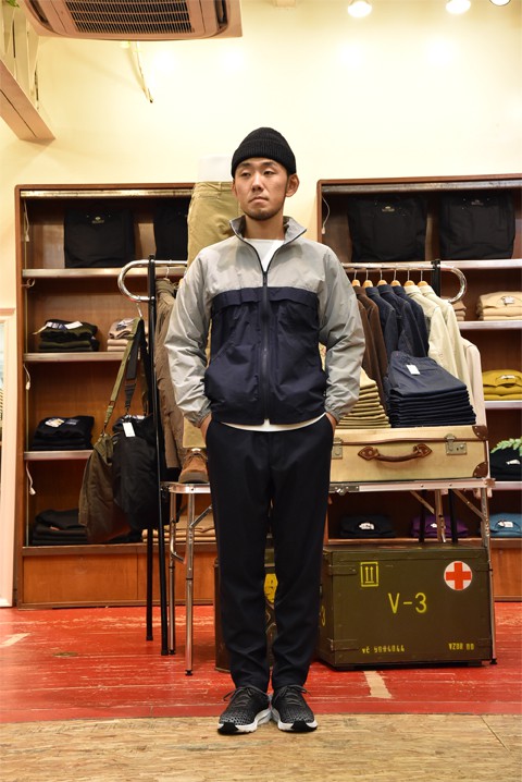 こんばんわ、大井勇人です。 本日のご紹介。 N.O.UN(ナウン)の新作アイテム、ENGLAND NYLON。好物なジャンバー系です。 素材はナイロン100%。しかしながらコットン素材のようなマットな質感でナイロン特有の光沢を抑えた見た目。それでもナイロン素材なので、軽量で丈夫。また適度な撥水もお任せあれ。 いわゆるスポーツブランドやアウトドアブランドをスタイルに取り入れ、スポーツMIXスタイルを楽しむだけでなく、こういうアプローチの仕方もおもしろいかと。 スタンドカラー、2トーンの切り替え、短めの着丈。どこかクラシックさが漂いつつも現代のデザインへと落とし込む。 さすがだ。またこうやって僕らを楽しませてくれる。このジャケットも欲しい。。 今時期はカットソーやシャツ一枚で過ごすのが丁度良く、その上から羽織れるジャンバーが欲しいというのが本音。荷物になればそのままバッグにしまう。そんなやつが個人的も気になります。 ●ブルゾン N.O.UN(ナウン)  サイズ:S  ¥24,840 ●カットソー N.O.UN(ナウン)  サイズ:S  ¥7,344 ●パンツ HARRISS(ハリス)   サイズ:38  ¥17,280 ●シューズ BRANDBLACK(ブランドブラック)  サイズ:US9  ¥16,200 ●帽子 N.O.UN(ナウン)  ¥10,584 身長168cm 体重58kg 足約26cm 季節が進めば、ジッパーを上まで閉めてコートやベストのインナーにして中間着として着てもおもしろそう! それでいて2トーンの切り替えだから色の見え方も良さそう。相変わらず玄人好みが感じですが、それがおもしろいところです。 是非お試しを。 ☆実店舗へのご案内、お店までへの行き方を地図や動画でご紹介! ⇒ZABOUのお店 ☆通販で購入、商品詳細など詳しく見る! ⇒ZABOU WEB SHOP(ウェブショップ) 通販サイト ●新着商品・再入荷商品などのお知らせ、その他情報満載! ⇒【ZABOU facebook(フェイスブック)】 ●おすすめ商品やザボスタが見たい! ⇒【ZABOU Instagram(インスタグラム)】 ●洋服の合わせ方、色の使い方などZABOU STYLEをご紹介! ⇒【ZABOU WEAR(ウェアー)】