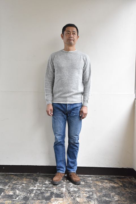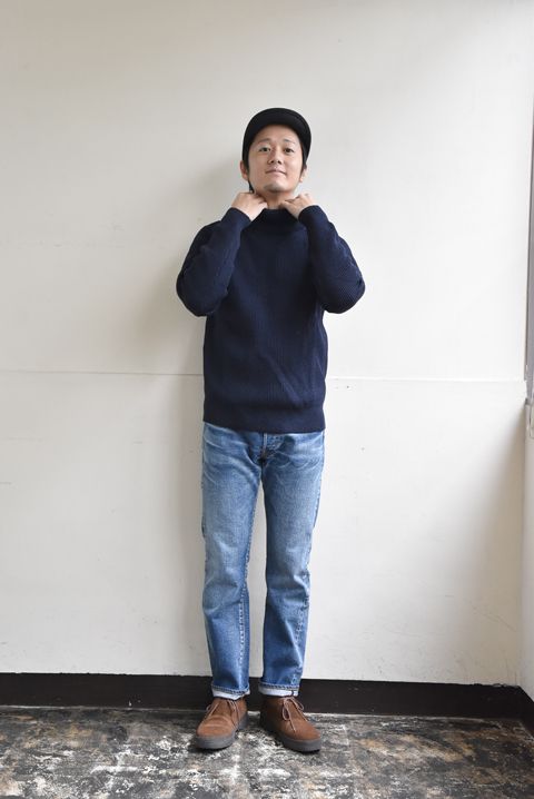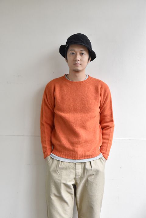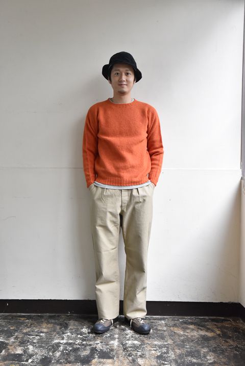 セーターのインナー。まずは安心のボタンダウンシャツで。 やや高めに立ちあがった襟のリブ編みに、ボタンダウンシャツが良く似合います。 シャツの裾をパンツにタックインして、衿と袖口だけ、シャツの色・柄を見せる着方がオススメ。 着丈の長めなセロのシャツを合わせております。 タックインかぁ。。。今日はイージーパンツやしなぁ。。。 そんな日には、シャツの着丈が短めなスピナーベイトのシャツがおすすめです。 裾もチラッと見せてごキゲンにお過ごしください。 オートミールとネイビーの色合わせ。 冬の季節に着る淡いお色目もなかなかにオツなものですね。 気持ち襟ぐり広めのクルーネックセーター。インナーにカットソーを合わせるとチラッと見えちゃう。。。 そんなときには、あえてセーターのカラーに合わせたインナーを合わせて、色のレイヤードを楽しんじゃいましょう!! よっこいしょっと、、、 セーターの衿ぐりにインナーのサーマルを手でチョちょいと合わせて。 かたよりのないように均等に見せる! シルバーグレーのセーターに白のサーマルインナー(ヘンリーネックタイプ)とGパンのスタイル。 とってもシンプルですが、ホッと安心するコーディネートですね。 発色の良さで着こなしがグッと楽しくなるシェットランドセーター。 オレンジのセーターにとグレーのインナーで柔らかな印象に。 毎年人気のカラー”Spice” むむむ。 こちらもチョちょいと衿もとを調整して。 オレンジのセーターにグレーのサーマルインナー(クルーネックタイプ)とチノパンのスタイル。 シャツでなくインナーにカットソーを合わせることで、よりセーターの柔らかさを楽しんで頂けます。 畦編みで着馴染みの良いセーター。インナーにもカットソー素材を合わせてより着心地の良さを楽しんでもらうのがおすすめ。 とはいえ、あまり襟ぐりの詰まったインナーTシャツだと首元のリブが見え過ぎてしまってよろしくございませんので、見えてもOKなチャンピオンのサーマルタイプのカットソーはいかがでしょうか。 見えておりませんが、ちゃんと着てます!チャンピオン!! なんどき、急にセーターを脱がなきゃな場面にも安心の同系色インナーを推奨!(前田の個人的なおすすめでございます(笑)) 首と名のつく箇所を暖かく保つことで、冬の寒さまでも楽しんじゃうことができるタートルネックセーター。 体温によって作られる暖かな空気を逃さないフィット感の良さで、冬のインナーと言えば、、、、、これッ!!なインデラのサーマルの最強コンビで寒さとも仲良しに! こちらも見えておりませんが、ちゃんと着てますよ!インデラのサーマル!! またまた前田の好み。カラーに迷った時には安心の同系色インナーを!! セーターが活躍する季節も間もなくでございます。 その日のセーターと、その日の気分にバッチリとフィットするインナー、ぜひお選び下さいませ!! ●今回ご紹介したインナーウェアのまとめ 長袖シャツ Champion(チャンピオン) INDERA MILLS (インデラミルズ) ●今回ご紹介したセーターのまとめ Channel Jumper(チャネル ジャンパー) Harley of Scotland(ハーレーオブスコットランド) Vincent et Mireille(ヴァンソン エ ミレイユ) 今宵は中秋の名月。 皆様もそれぞれの場所で夜空を見上げ、月を愛でて下さいませ。 明日もご来店をお待ちしております。