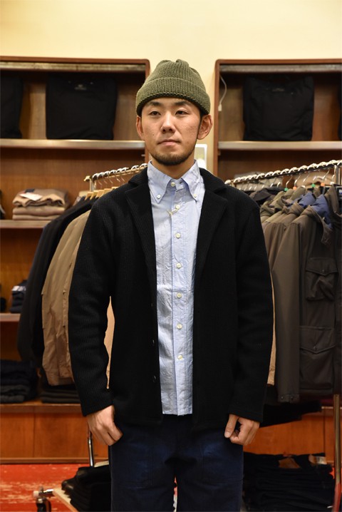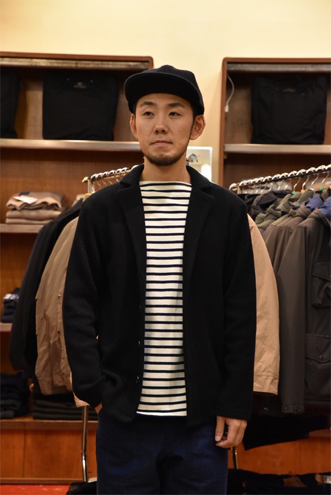 おすすめ秋アウターのひとつ、SPINNER BAIT(スピナーベイト) ラッセルウールテーラードカーディガン。