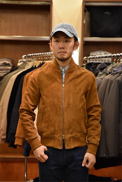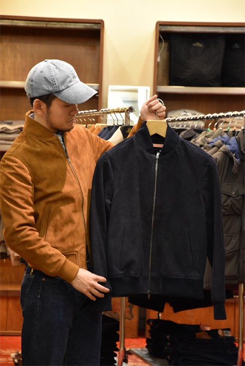 イタリアもんのレザージャケット。素材には上質なゴートスエードを使用したショート丈のブルゾンです。特徴はなめらかな肌触りと柔らかな質感。大人の着こなしを格上げしてくれるアイテムです。