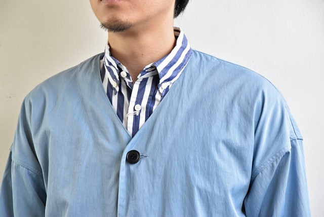 ●weac.(ウィーク)'18春夏 BASIC SHIRTS カラー:ブルー、ネイビービッグストライプ ¥16,200-