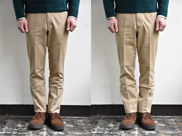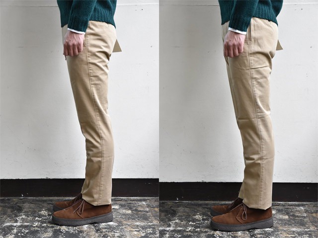 縫製は仕立て屋のスラックス仕様で細部までのコダワリっぷり。最大の特徴は"シルエット" その美しいシルエットからパンツのバーンストーマーと呼ばれるほど。