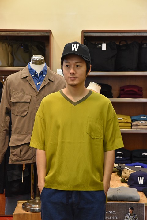 リラックスしたシルエットに素材のドレープ感が雰囲気よく、Vネックもちょっと新鮮。ゆるめの開襟シャツをTシャツにしたような感じですね。