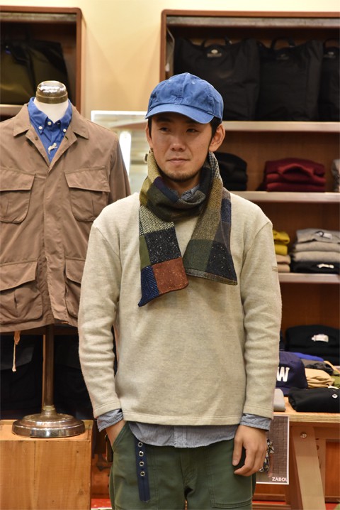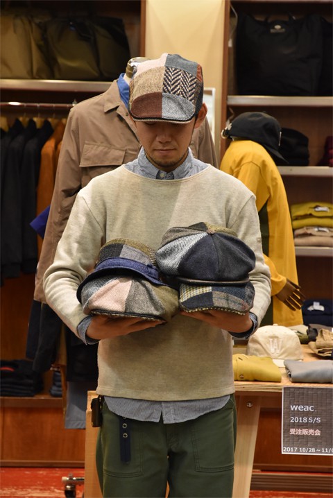 前によくやってたみたいなんですが、僕はお初。ツイードパッチワークの帽子4型とストール。ハンドメイドによるものなので一点一点仕様はバラバラ。冬のクラシックな装いにピッタリなアイテムでございます。