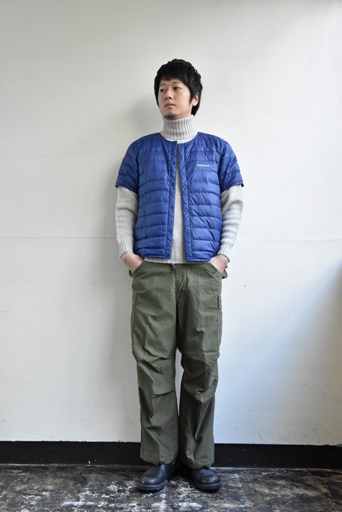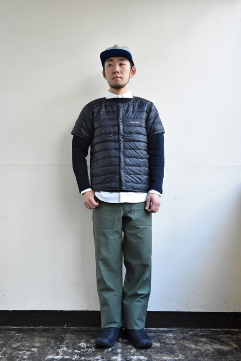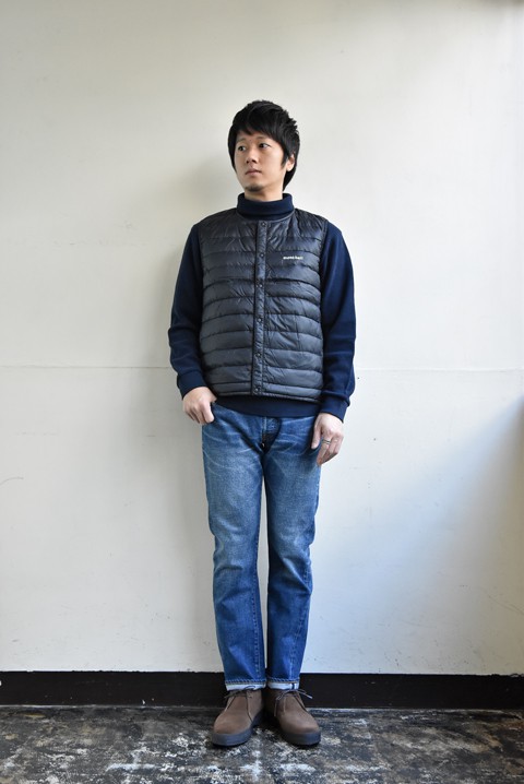 実は登場して一番日が浅いのがこのベスト。 袖がないので、テーラードジャケットのようなアームが細めのアウターにもバッチリなんです。 ダウンベスト感覚でも着れて使い勝手良し。ベストだけブラックのみの展開です。