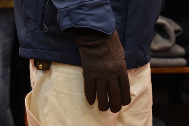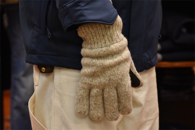 ウール×ナイロンを混紡したグローブ。写真のブラウンの他にオリーブもございます。