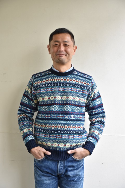 現存するシェットランドセーターのブランドの中でも最古参。伝統的なフェアアイル柄が良いアクセントに。