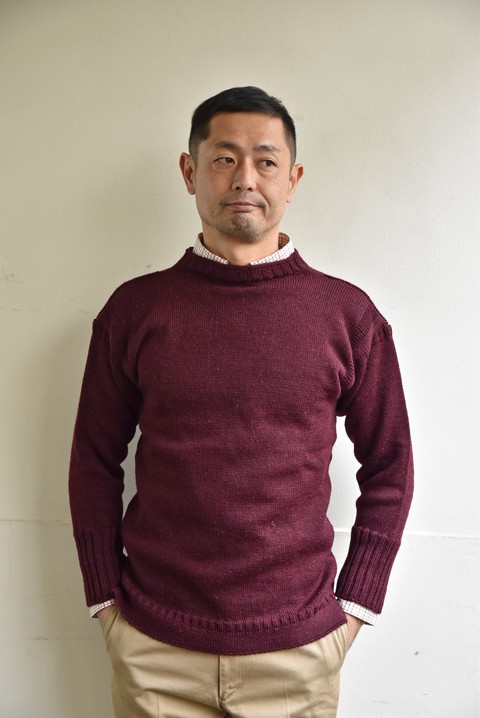 このイギリスの伝統的なセーターは毛玉も出来辛く、体への馴染みもよく実感出来る一枚です。
