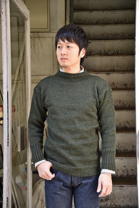 ガンジーセーターは素肌に当たるとチクっとしますので、中は襟付きのシャツを着たほうが快適ですが、ワタクシはサーマルの上から着ていることの方が多いです。チクチク?我慢してます(笑)。