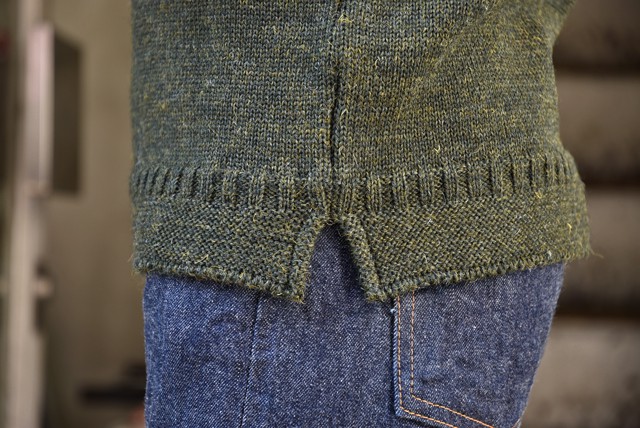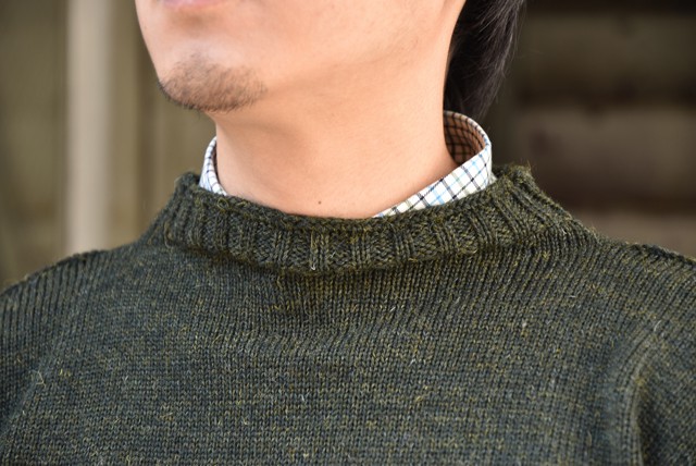 過酷な環境で着る(着れる)セーターなので、とても暖かい。目が詰まってガッシリとした編地は風を通しにくく丈夫で着る毎に体に馴染んでまいります。おまけに毛玉もできにくい。