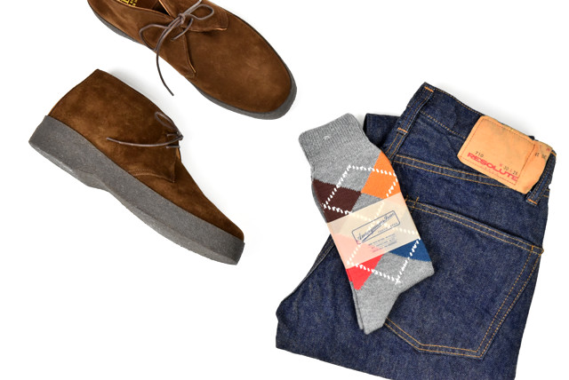 短め丈のリゾルトに合わせるチャッカブーツもまた抜群にカッコ良いです。