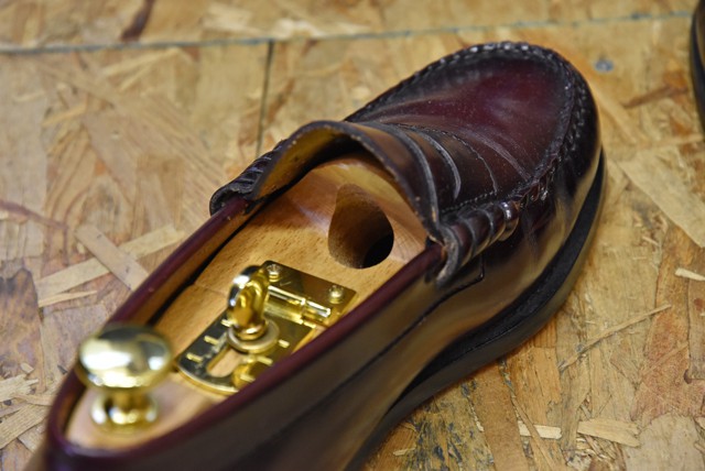 今日はバスのローファーをサンプルにしましたが、パラブーツのシャンボードやサンダースのブリットチャッカにもお使い頂けますよ。
